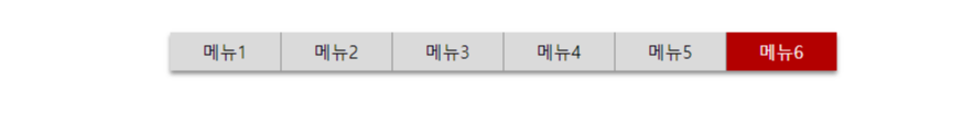 --> 가상 클래스 :not 으로 구조 가상 클래스 li:last-child 를 사용하여 메뉴6을 제외하고, 가상 클래스 a:hover 로 지정해준다.