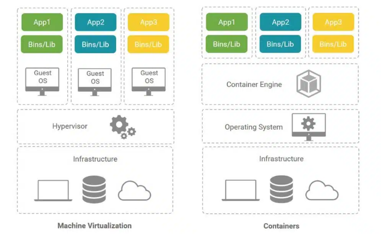 게스트 OS가 끼지 않고 호스트의 커널을 그대로 사용하므로, 가상머신보다 훨씬 빠른 실행속도와 간편성을 제공한다.