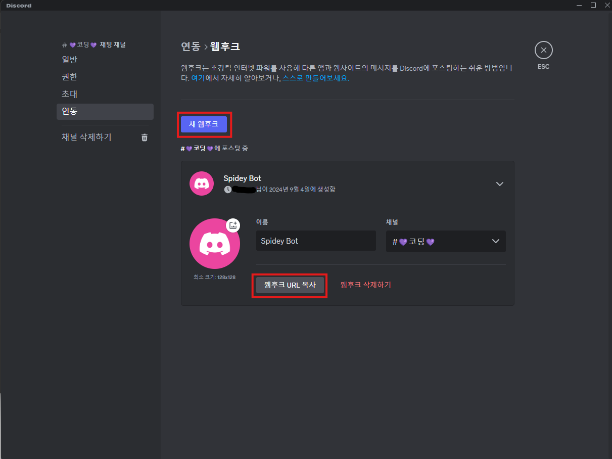 3. Discord 웹훅 만들기