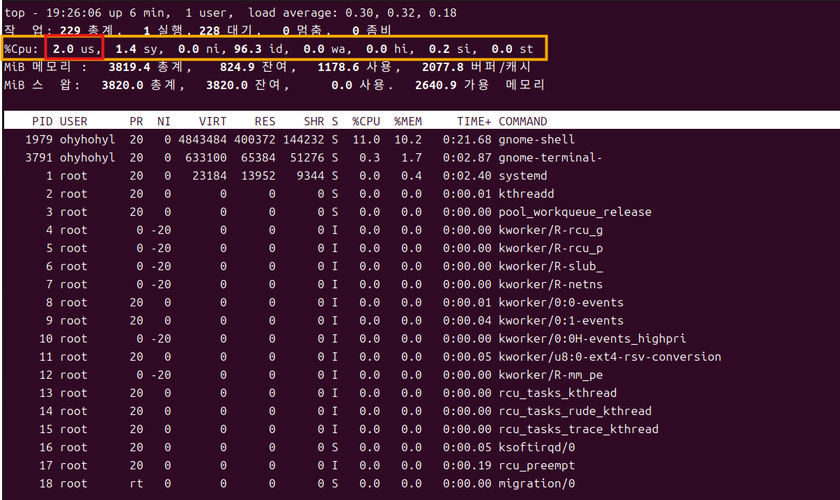 > `%Cpu` 라인 <