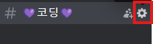 2. 생성한 채널 옆, `톱니바퀴` 버튼을 클릭하여 채널 설정에 들어간다.