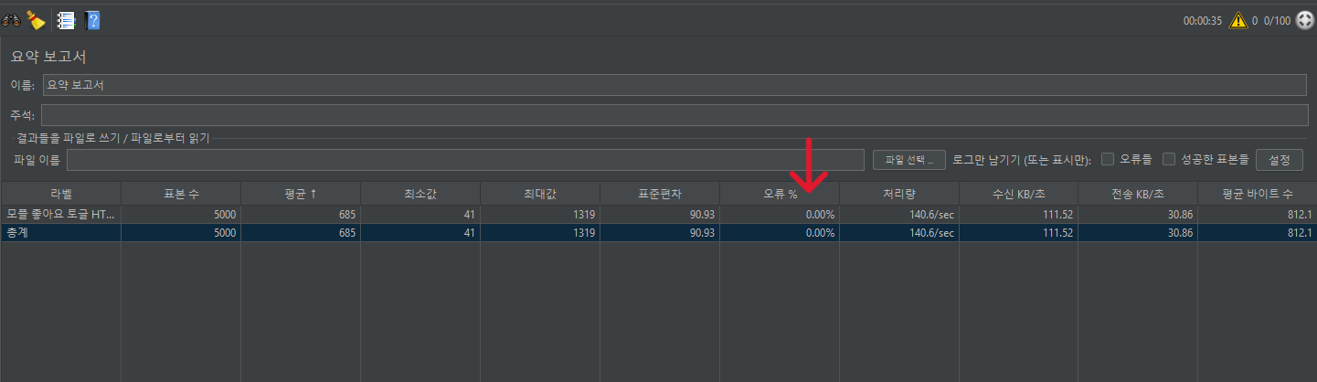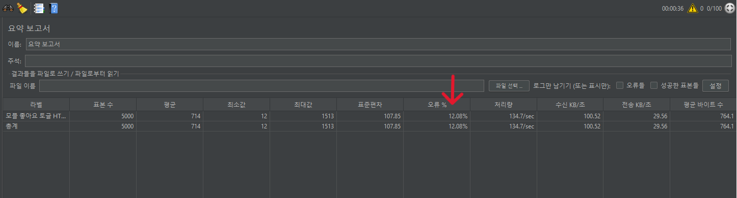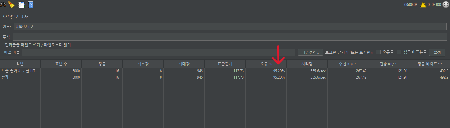 실행하고 보니 오류율 95% 나 나왔다,,,, 이대로 배포했으면 큰일 날 뻔했다,,, 😂