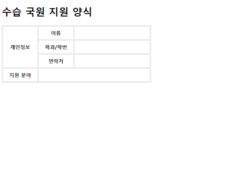 --> 4행 2열 <td>태그를 <td colspan="2">로 바꾼다. 열을 합치는 것은 다른 행에 영향 안 끼친다.
