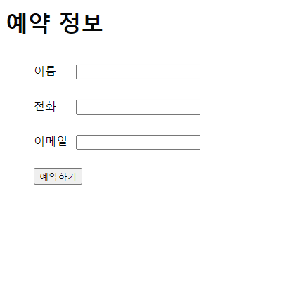 마지막 순서로, 'button' 유형으로 버튼을 생성하여 '예약하기'라는 내용을 입력한다.