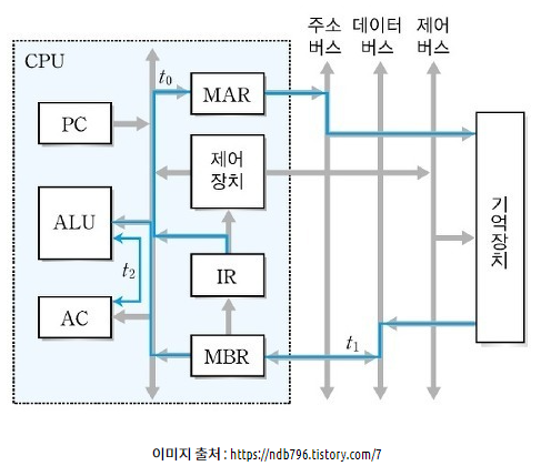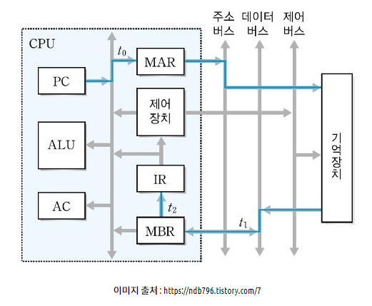 2. MAR(주소)에 저장된 내용으로 주기억장치의 해당 주소에서 명령어를 인출